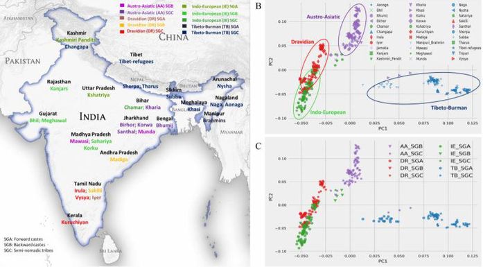 Các nhà nghiên cứu phát hiện ra rằng những người nói cùng một ngôn ngữ có nhiều khả năng có quan hệ họ hàng chặt chẽ hơn, bất kể họ sống ở đâu trên tiểu lục địa. Ví dụ, phân tích của họ cho thấy những người nói tiếng Ấn-Âu và người Dravidian chia sẻ sự trôi dạt di truyền với người châu Âu, trong khi những bộ lạc nói tiếng Tạng-Miến chia sẻ nó với người Đông Á.