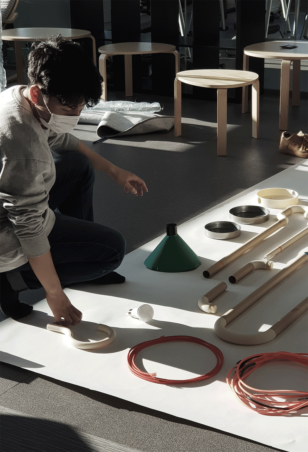 Nhà thiết kế Huisu Jo đã quan sát hành vi của mọi người ở ‘Dongmyo’, một khu chợ truyền thống của Hàn Quốc, nơi mọi thứ đều được sử dụng như một cách “thuận tiện nhất”. Anh ấy thấy mọi người tháo vát với ngay cả những mảnh vụn và được truyền cảm hứng bởi thực tế rằng móc treo được sử dụng như cách dễ nhất để trưng bày các mặt hàng. Ngay cả ở các chợ địa phương của Ấn Độ, móc treo được sử dụng để tạo ra một kệ tạm thời cho các mặt hàng và đôi khi còn được sử dụng để treo đèn để trưng bày các mặt hàng được bày ra bên dưới khi trời tối. Hook là một chiếc đèn được lấy cảm hứng từ những chiếc hack tạm thời này và được thiết kế để cho phép người dùng điều chỉnh vị trí của ánh sáng theo nhu cầu của họ.